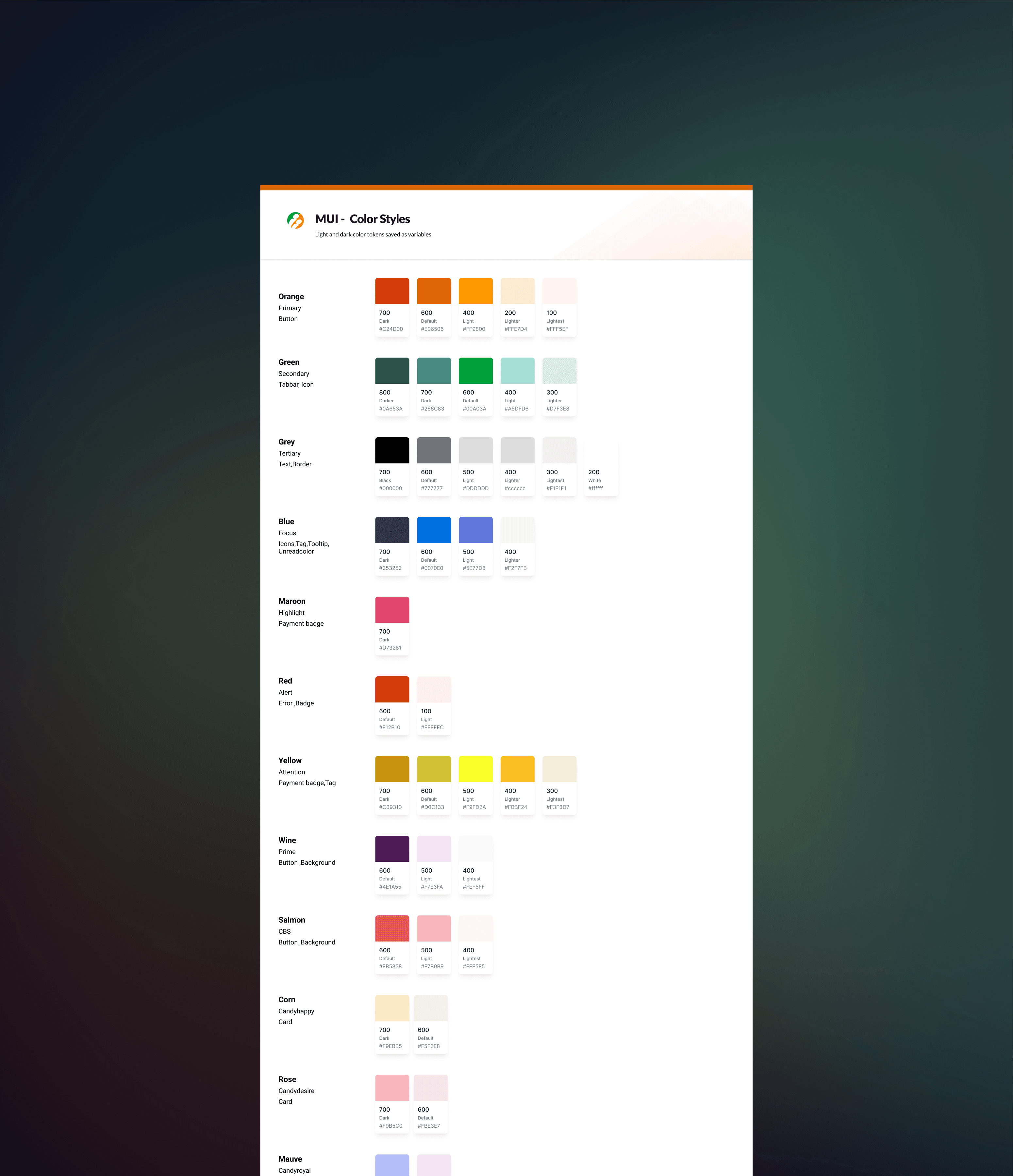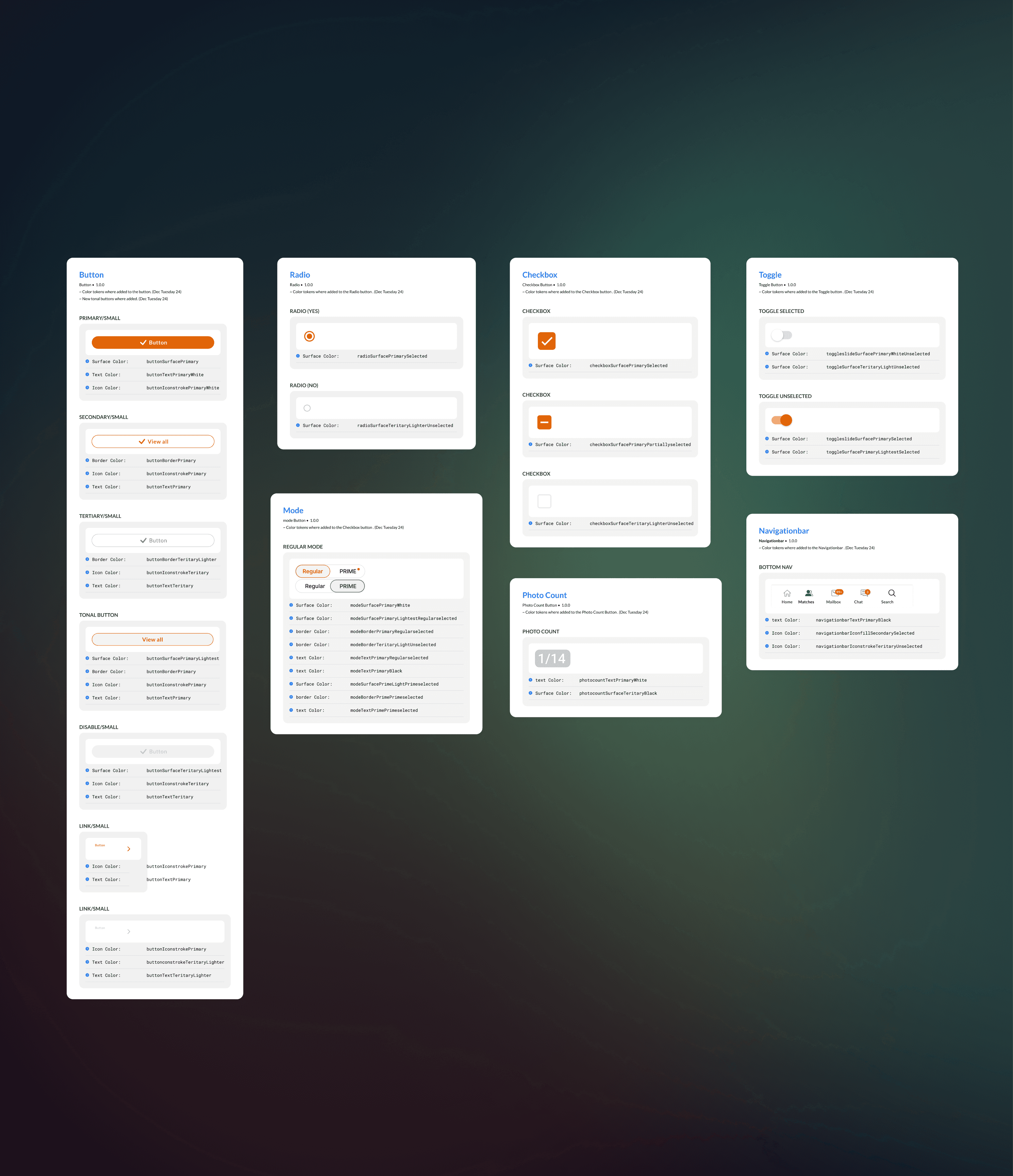Defined semantic color tokens (Primary, Surface, Accent, States)