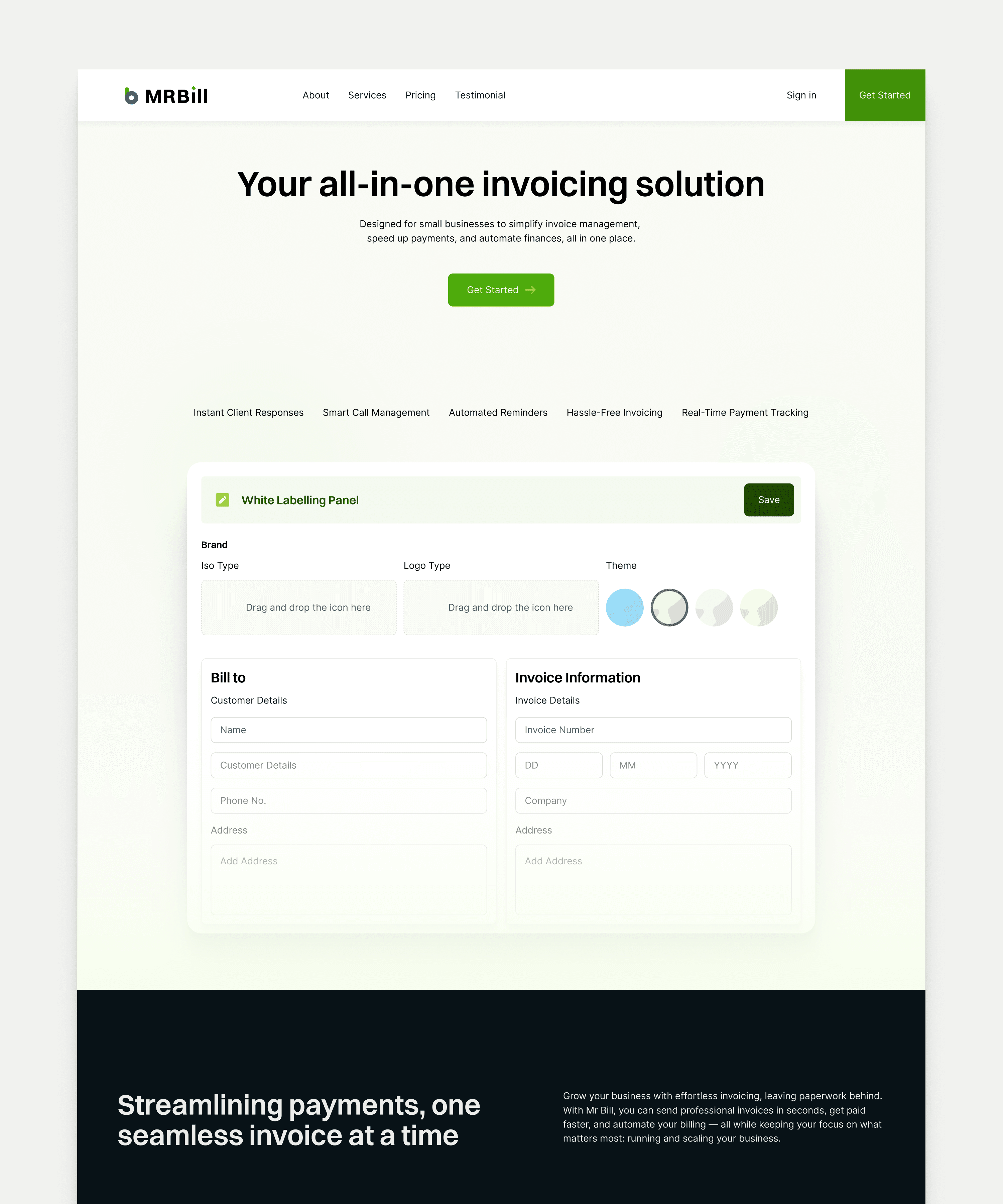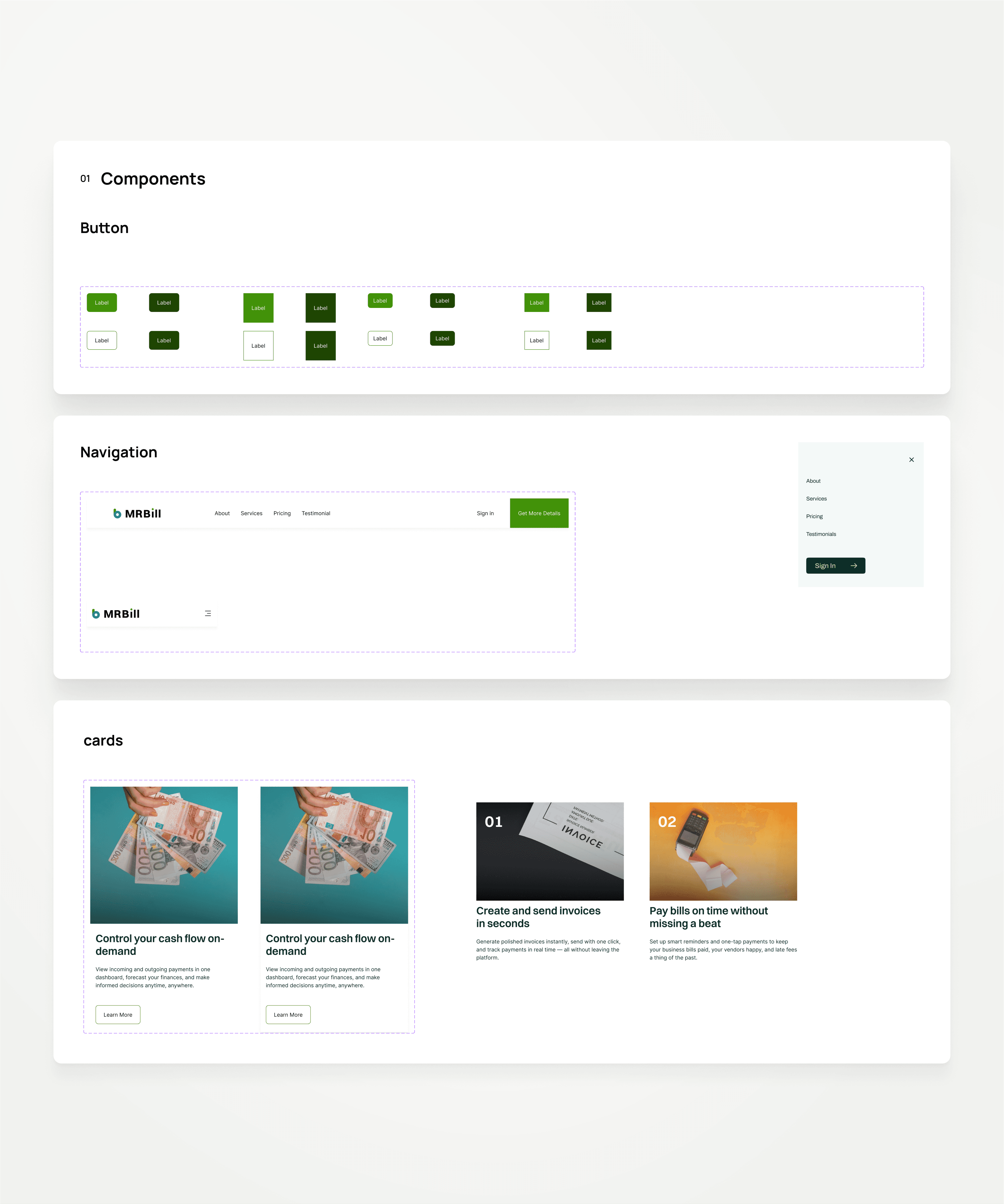 MRBill – SaaS Landing Page & Design System