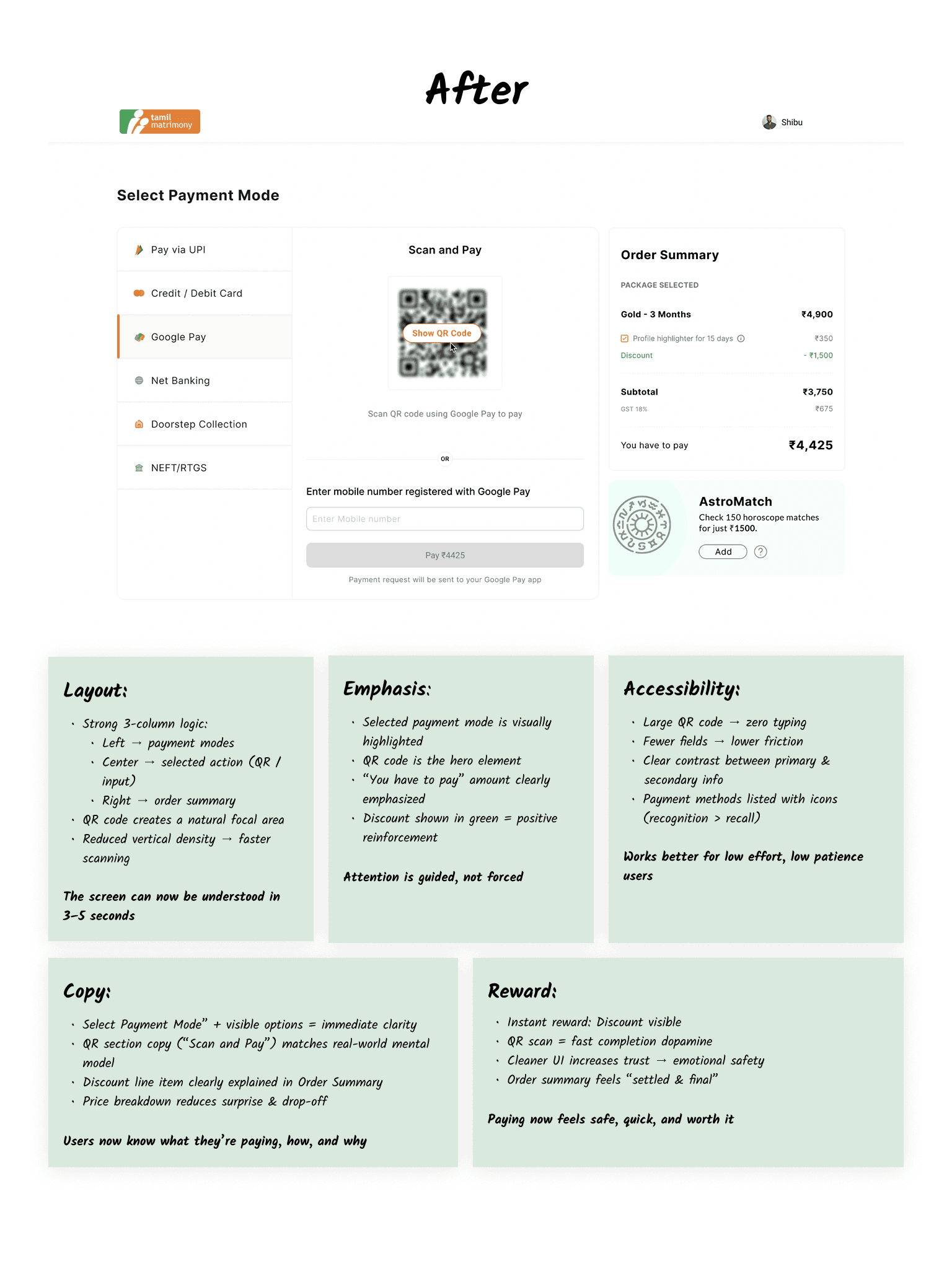 Designed a clean and consistent payment module