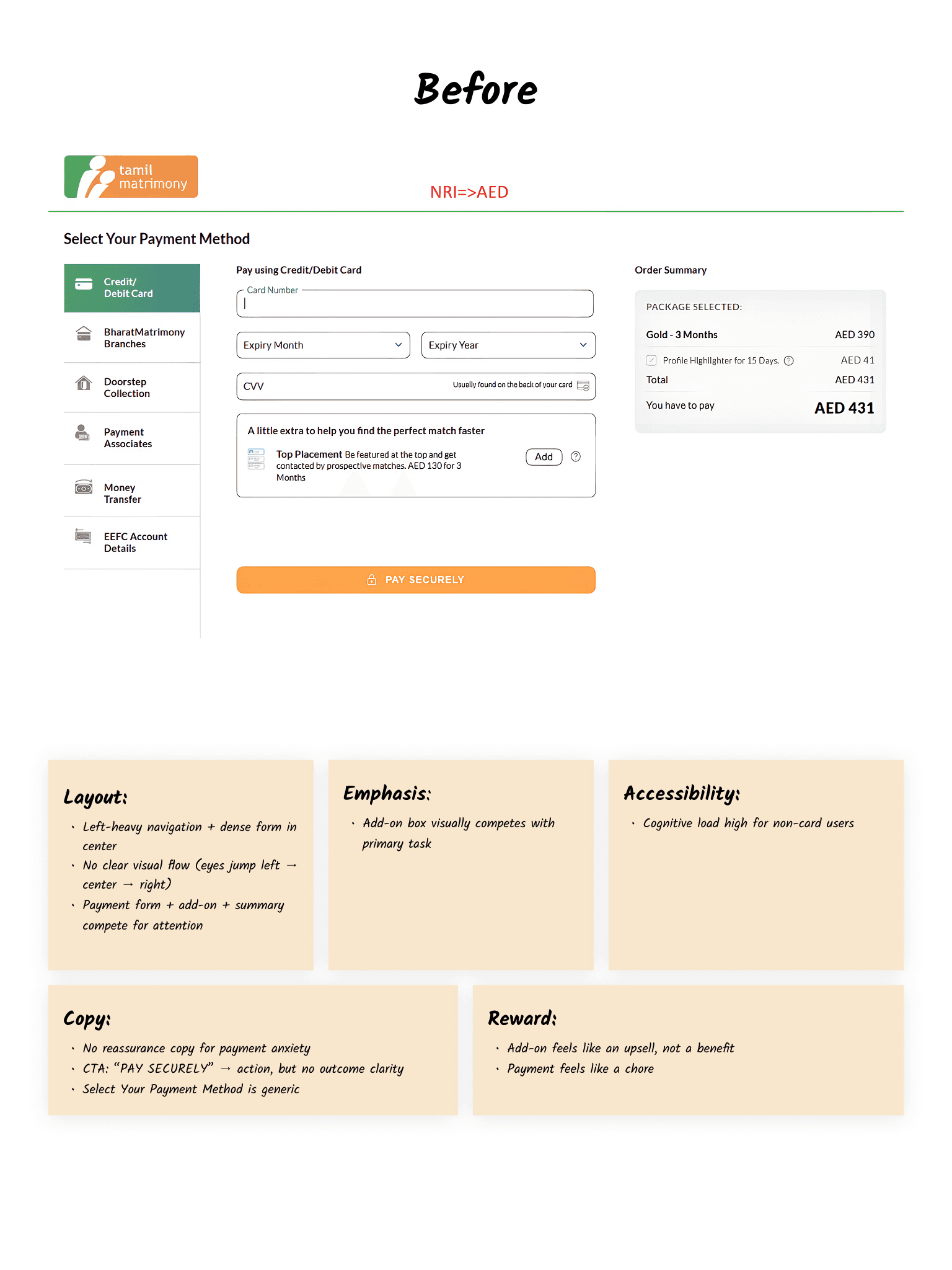Users felt overwhelmed by too many payment options